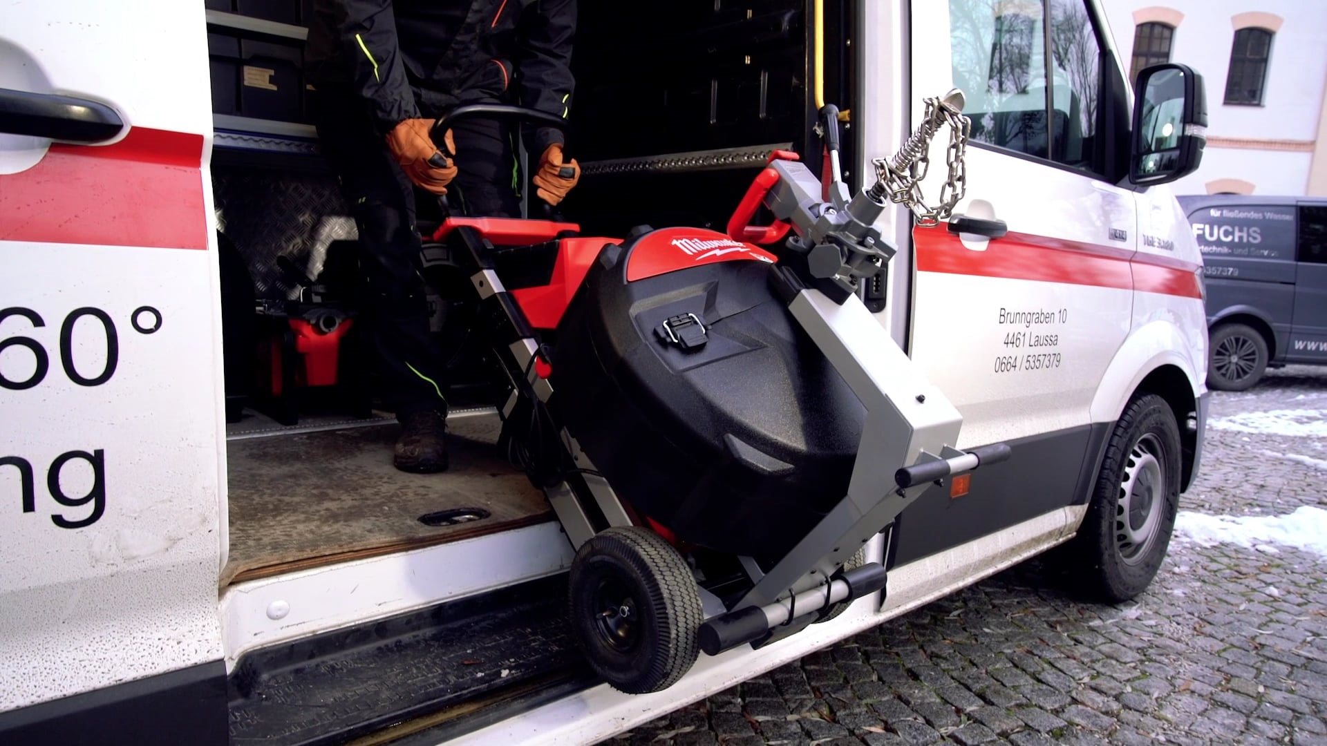 • Duży przepychacz do rur MX FUEL™ ze zintegrowanym systemem POWERTREDZ™ wymaga tylko jednej osoby żeby wprowadzać i wyprowadzać maszynę kanalizacyjną z samochodu dostawczego, po schodach w górę i w dół